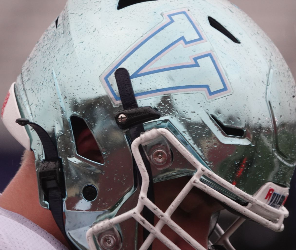 Valor practice helmet decal at Valor football practice in Highlands Ranch, Colorado 11-8-2023 (Augustus Oswald, CU News Corps).