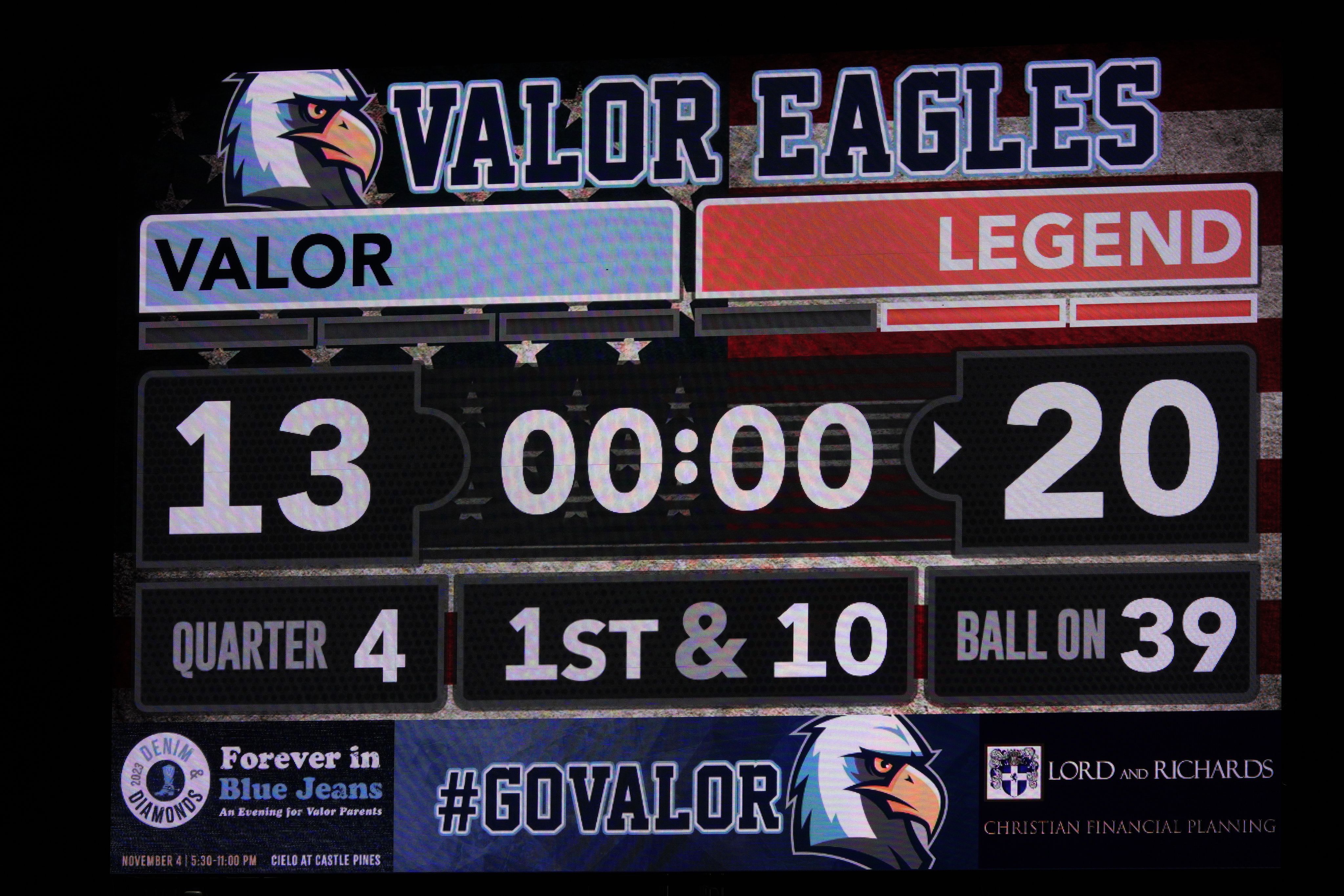 Final score of playoff game for Valor vs Legend high school, in Highlands Ranch, Colorado 11-10-2023 (Jared Brendlinger, CU News Corps)