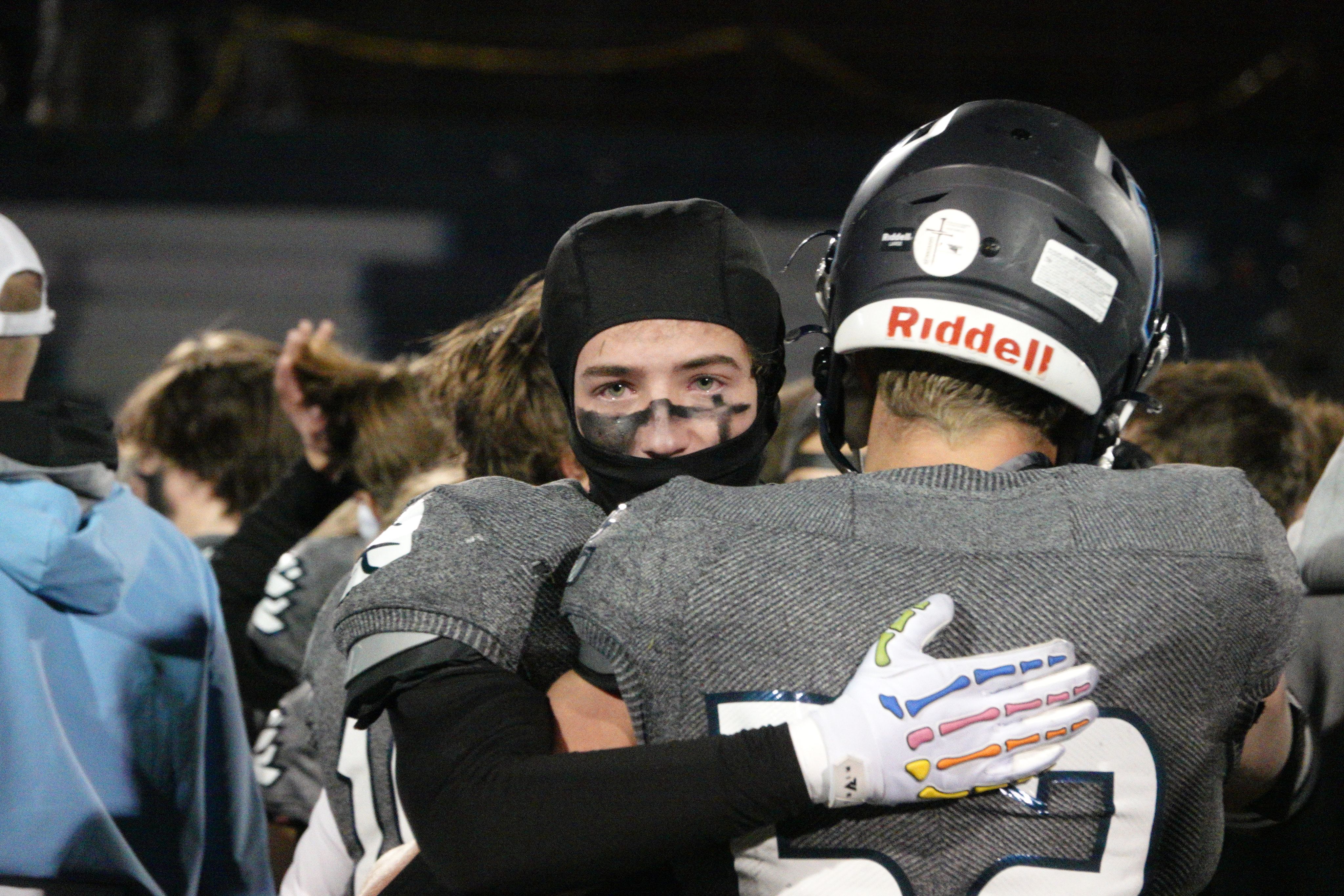 Valor Christian players embracing each other after playoff loss in Highlands Ranch, Colorado 11-10-2023 (Michael Tierney, CU News Corps)