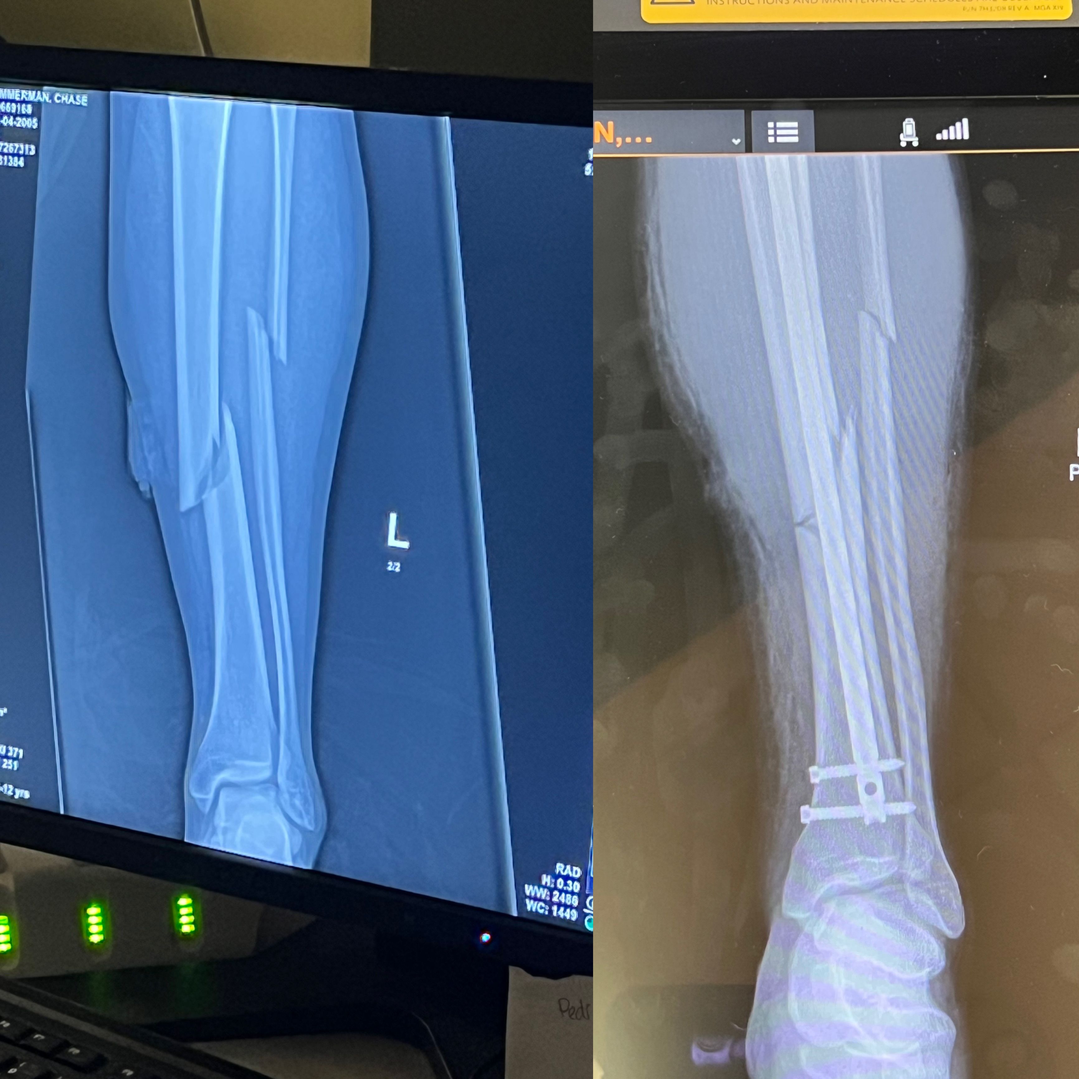 X-rays of Chase Zimmerman's Compound Tibia Fibula Fracture (Courtesy of Chase Zimmerman's Phone)